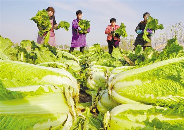 11月18日,滦州市小马庄镇许家河漕村的菜农在收获大白菜。