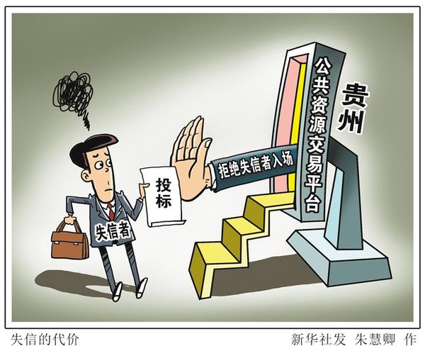 近日,贵州省发改委、贵州省高级人民法院、贵州省财政厅等九部门联合下发在公共资源交易领域对法院失信被执行人实施信用联合惩戒的通知,被法院列为失信被执行人的代理机构和投标人将被挡在公共资源交易的“大门”之外。
