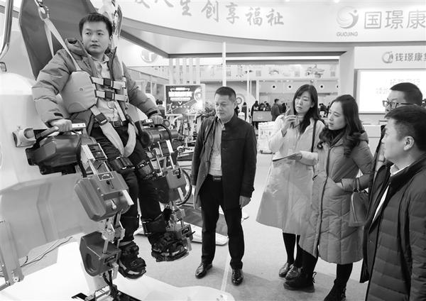 11月19日,参展商在演示一款康复辅助器具。11月19日至21日,2019中国康复辅助器具产业创新大会在河北省秦皇岛市举行。新华社记者 郭雅茹 摄