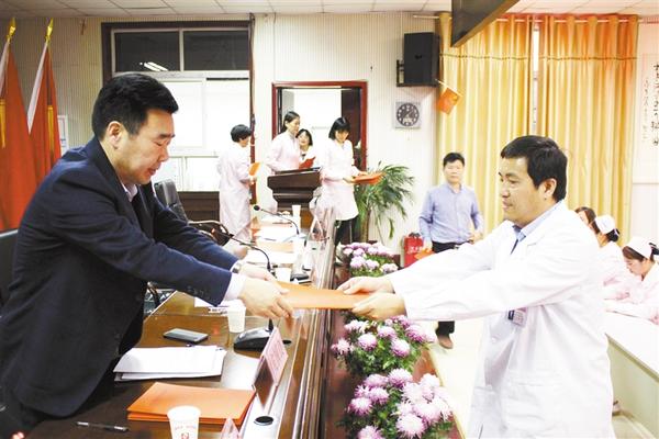 会上,各科室责任人向主管领导、院领导班子向亢国良分别递交了目标责任书(如图)。②8