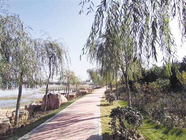 西华县将贾鲁河城区段河道综合治理项目列入百城建设提质工程,斥资5亿多元,高标准规划、高起点设计。经过近两年的建设,如今河道两旁的白皮树、七叶树、玉兰等多种景观树亭亭玉立、随风摇曳,景观效果已经显现。图为贾鲁河滨河景观带。