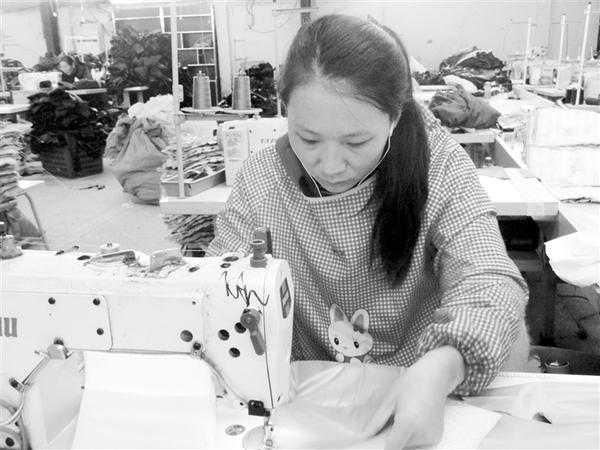 11月20日,商水县张庄乡王岗村的贫困群众正在村扶贫车间加工冬衣。该村20名贫困人员在扶贫车间就业,月工资3000多元。