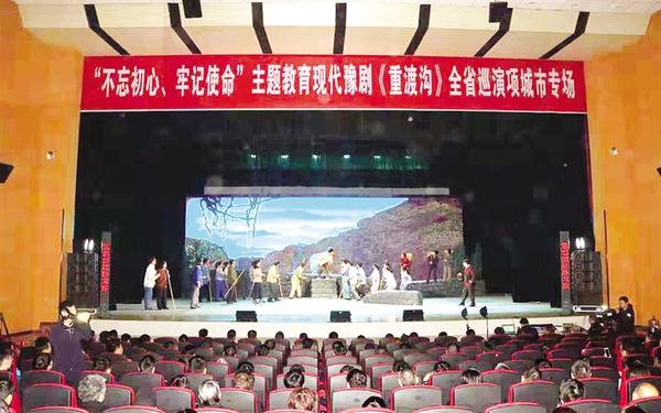11月15日,“不忘初心、牢记使命”主题教育现代豫剧《重渡沟》全省巡演走进项城,在项城人民会堂精彩上演。项城市委书记刘昌宇,市长王富生,市领导王玉玲、毛磊、夏新明、崔卫华等到场观看演出。 现代豫剧《重渡沟》是河南豫剧院三团根据洛阳市栾川县潭头镇副镇长马海明的真实事迹创作而成。1996年,马海明主动请缨牵头开发重渡沟景区,他历尽艰辛、排除万难,最终将一个穷山沟开发成远近闻名的旅游景区。2000年他调离潭头镇时,乡亲们依依不舍、挥泪送别。2011年5月马海明去世时,万人相送。演出过程中,感人的故事情节、饱满的人物形象、强烈的戏剧冲突、饱含深情的唱腔、自然生动的表演让现场观众感同身受,赢得大家阵阵掌声。 记者 杨光林 通讯员 王洁石 摄
