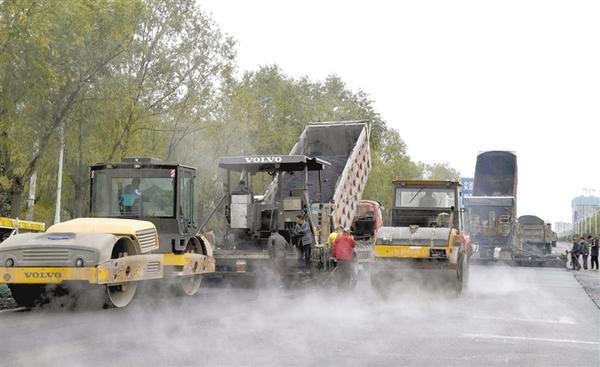 昨日,在中原路(庆丰街至建设大道段)提升改造工程施工现场,工人们正驾驶工程车紧张工作。据悉,该工程距离完工已进入倒计时阶段,庆丰街至文昌大道之间的路面已铺设完毕,目前正在为最北端文昌大道至建设大道之间的路面铺设沥青混凝土,很快就能通车。记者 梁照曾 摄