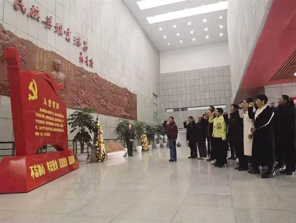11月20日上午,县妇联党支部与帮扶村大连乡代庙村党支部组织党员干部赴扶沟参观吉鸿昌将军纪念馆,接受红色教育。图为党员们重温入党誓词。