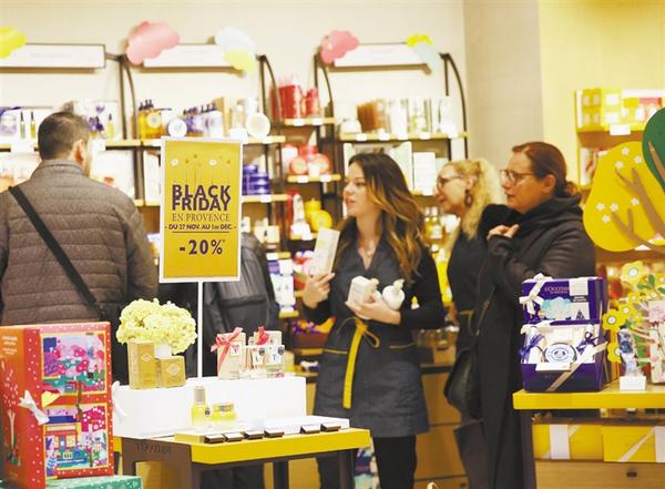 11月27日,在法国巴黎,人们在商店内购物。巴黎将于11月29日迎来“黑色星期五”购物促销日。新华社记者 高静 摄