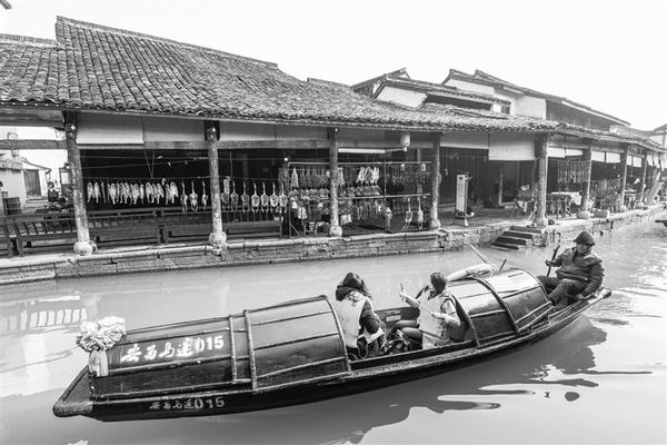 12月3日,安昌古镇的河边晒满了各种手工制作的绍兴腊味。初冬时节,浙江省绍兴市柯桥区安昌古镇开启了传统腊味制作、上市的季节。当地百姓用传统酱油、黄酒、香料等手工腌制腊肠、酱鸭、鱼干、酱鹌鹑、酱排骨等绍兴特色酱货,在冬季的阳光下进行晾晒,满街飘香的腊味也成了这座江南古镇的独特风景。新华社记者 徐昱 摄
