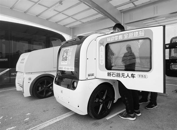 12月10日,工作人员在雄安新区维护无人售货车。记者探访雄安新区时看到:没有传统收银台的无人超市、没有司机的无人驾驶车、刷脸入住的智慧酒店……这些“无人”元素,在摸索中打造雄安这座未来之城的智慧基因。新华社记者 邢广利 摄