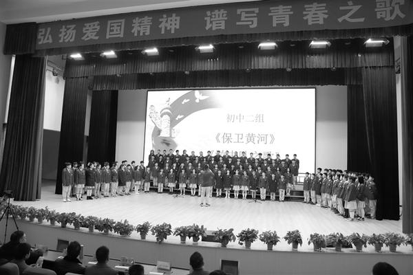 为纪念“一二·九”抗日救亡运动,进一步推动校园文化建设,12月9日晚,周口天立学校在学术报告厅举办“弘扬爱国精神,谱写青春之歌”纪念“一二·九”抗日救亡运动84周年歌咏比赛暨首届校园合唱节。本次比赛增强了同学们的集体荣誉感,推动了校园文化建设,展现了天立学子爱国、爱校、爱集体的精神风貌。 记者 刘华志 摄
