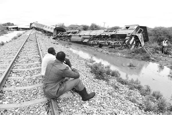 这是12月10日在博茨瓦纳马哈拉佩村附近拍摄的脱轨列车。博茨瓦纳铁路部门10日说,一列客运列车当天凌晨在博茨瓦纳马哈拉佩村附近脱轨,造成至少2人死亡、多人受伤。新华社发