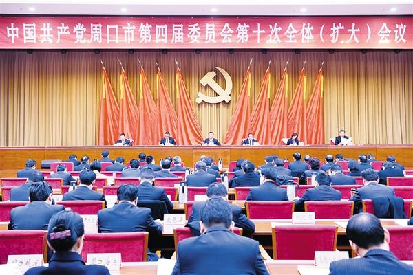 本报讯 (首席记者 刘彦章) 12月12日上午,中国共产党周口市第四届委员会第十次全体(扩大)会议在周召开。全会高举习近平新时代中国特色社会主义思想伟大旗帜,深入学习贯彻习近平总书记视察河南重要讲话、党的十九届四中全会和省委十届十次全会精神,动员全市上下在谱写新时代中原更加出彩绚丽篇章中牢记初心使命、展现担当作为、提升治理水平,奋力开创高质量跨越发展新局面,绘就新时代周口特色添彩画卷。