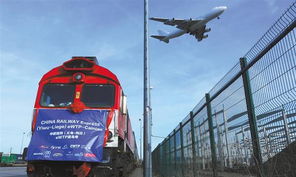 图① 2019年10月25日,经过17天运行,满载着82个标准箱的中欧班列(义乌—列日)“世界电子贸易平台(eWTP)菜鸟号”首趟列车抵达比利时列日物流多式联运货运场站。这是首个贯通中国长三角区域、中亚和欧洲并服务于跨境电子商务的专列。