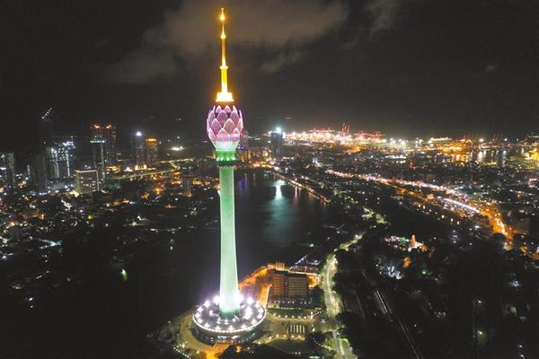 图③ 2019年9月3日航拍的斯里兰卡科伦坡莲花电视塔夜景。科伦坡地标建筑莲花电视塔9月16日晚举行竣工庆典。莲花电视塔是中斯两国在“一带一路”建设中的重要合作项目,由中国进出口银行提供大部分贷款,中国电子进出口有限公司负责承建。塔高350米,是迄今南亚最高的电视塔。