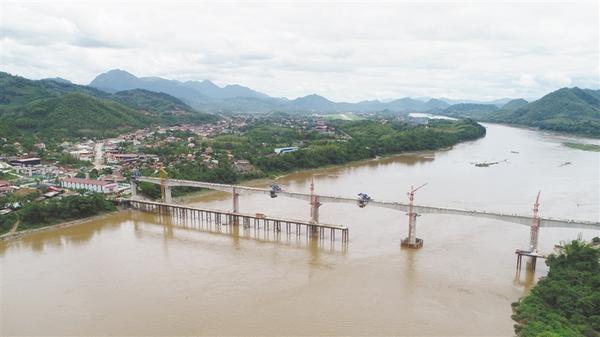 图② 2019年7月28日拍摄的合龙后的中老铁路老挝琅勃拉邦湄公河特大桥。中老铁路老挝琅勃拉邦湄公河特大桥当日成功合龙,实现全桥贯通,比计划工期提前7个月,标志着中老铁路2019年土建工程取得关键性胜利、中老铁路工程建设取得重大成果。