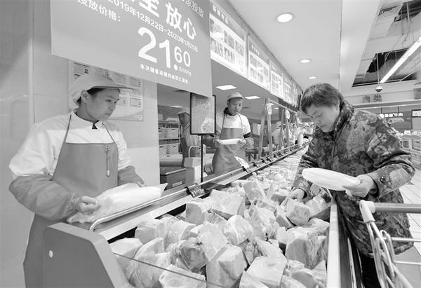 为做好冬至到春节期间猪肉市场保供稳价工作、满足市场消费需求,南昌市第三批市级储备猪肉12月22日起开始全面投放市场。本次投放将持续至2020年1月25日,猪肉销售价格为21.6元/斤。新华社发