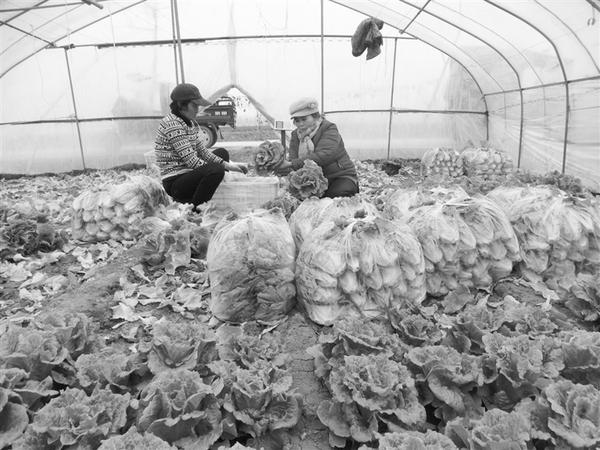 12月21日,沈丘县周营镇黄孟营村蔬菜大棚基地,村民忙着采收蔬菜大棚冬季第二茬生菜。近年来,该镇发挥资源优势,按照“产销对接”的工作思路,积极培植蔬菜生产加工企业,采取“合作社+基地+农户+订单”模式,大力发展特色农业,带动贫困户增收致富。