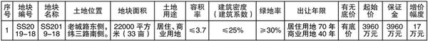 挂牌报价时间为:SS2019-18地块:2020年1月13日10时至2020年1月23日10时。挂牌网址:周口市公共资源交易系统(网址:http://www.zkggzyjy.gov.cn)。