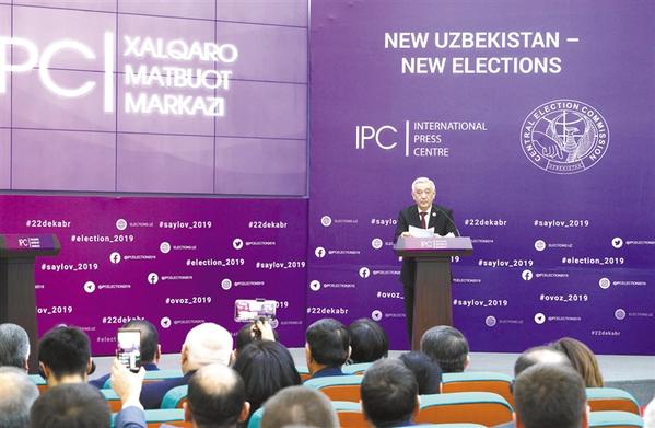 12月23日,在乌兹别克斯坦首都塔什干,乌中央选举委员会主席阿卜杜萨洛莫夫公布选举结果。乌兹别克斯坦中央选举委员会23日宣布,22日举行的乌最高会议立法院(议会下院)选举产生了150名议员中的128名,其余22名议员将在两周后举行的第二轮投票中产生。 新华社发