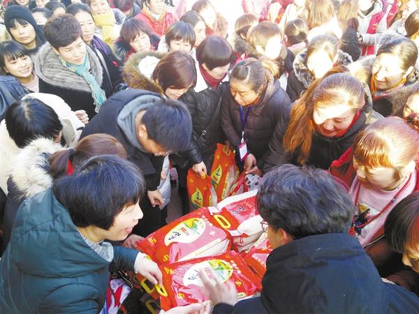 2019年12月31日,川汇区和开发区从事政府购买养老服务的工作人员正在领取奖品。川汇区和开发区自2018年推行政府购买养老服务工作以来,已有5600多位80岁以上老人受益。为激励广大服务人员的工作热情,2019年12月31日,由川汇区和开发区民政局主办、周口市康德养老服务有限公司承办的政府购买养老服务工作总结表彰会召开,数位从事政府购买养老服务的工作人员受到表彰。记者 刘俊涛 摄