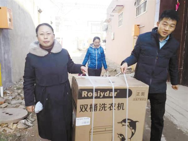 近日,县文联干部刘秋玲为帮扶对象史店家送去一台洗衣机。史店是化河乡杨树东村人,其爱人残疾,双手不能接触凉水,冬天洗衣困难。冬至那天,刘秋玲和同事到史店家帮忙包饺子时,得知其爱人想要一台洗衣机后,便一直记在心上。2019年12月26日,刘秋玲刚领到工资就为史店家购买了一台洗衣机。