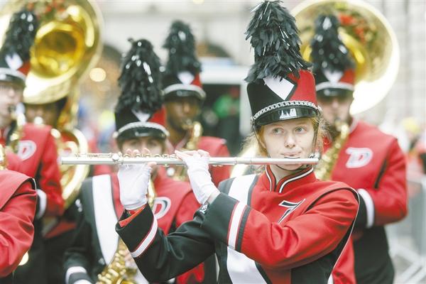 ④ 1月1日,在英国伦敦,乐队队员在新年游行活动上演奏。