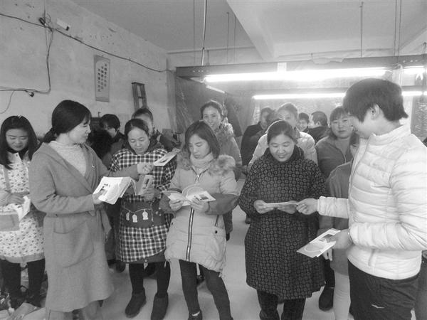2020年1月6日,商水县巴村镇的县人大代表在一家民营企业向员工发放《农民工维权宣传手册》。为确保农民工按时足额拿到工资,近日,巴村镇组织人大代表、司法人员深入小微企业,向农民工宣传法律维权知识,了解农民工工资发放情况,切实发挥人大监督作用。乔连军 摄
