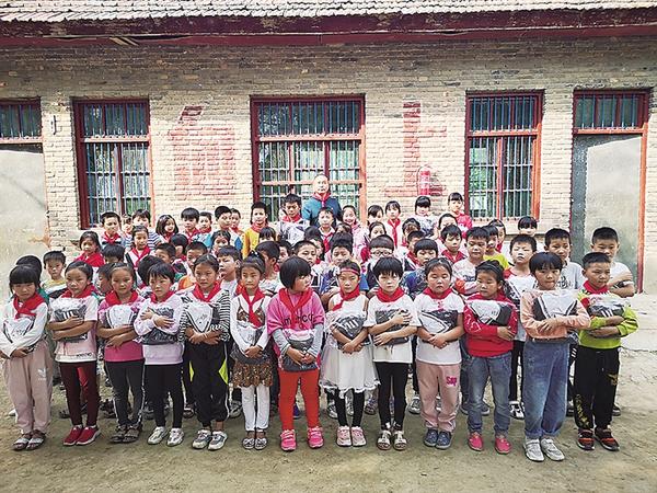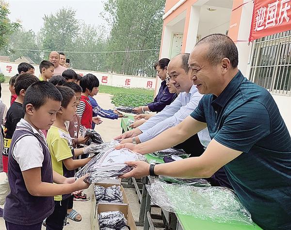 2019年1月15日上午,方凯带领周口凯盛实业有限公司的员工,特意到扶沟县一个乡村幼儿园为这里的孩子们送来了价值4万元的羽绒服和书包。