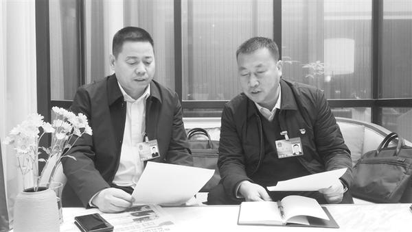 省十三届人大三次会议将于1月10日在郑州开幕。1月8日下午,来自周口的两位省人大代表拿出各自准备好的建议,在驻地大厅内相互交流,商讨如何在会议期间提出高质量的建议,为周口更加出彩发声加油。