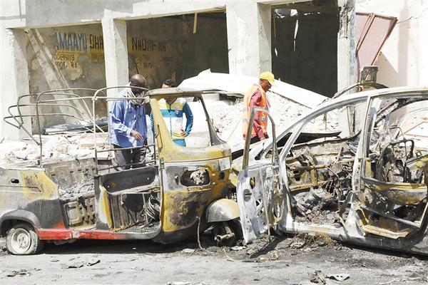 这是1月8日在索马里摩加迪沙拍摄的汽车炸弹袭击现场。索马里官员8日说,索马里首都摩加迪沙总统府的一个安全检查站当日遭遇自杀式汽车炸弹袭击。袭击共造成5人死亡,11人受伤。新华社发
