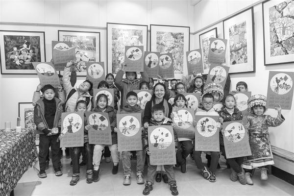 1月13日,在浙江省慈溪市横河镇文化中心,20小学生们展示自己创作的以新年为主题的农民画。