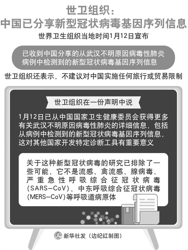 世卫组织:中国已分享新型冠状病毒基因序列信息