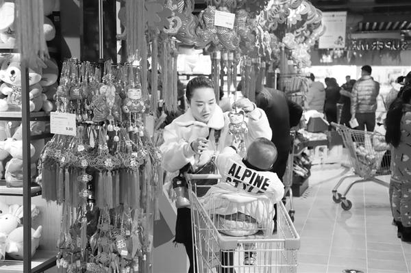 新春佳节临近,年货市场一片红火,市民纷纷采购大红的饰品为家里增添浓浓年味儿。昨日,市民在中心城区七一路一家超市内选购春节饰品。 记者 窦娜 摄