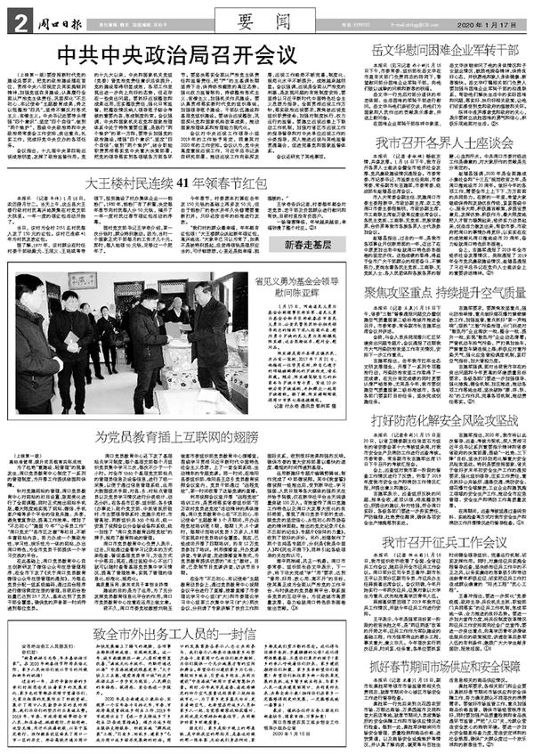 本报讯 (记者 韦伟) 1月16日,农历腊月廿二。当天上午,沈丘县大王楼行政村村民高兴地聚集在村党支部大院里。一年一度的领红包活动开始了。