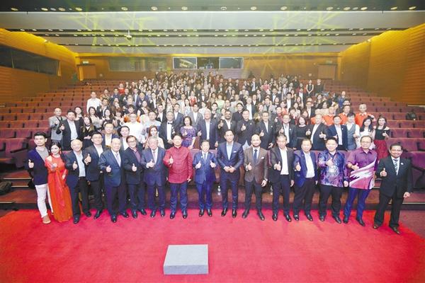 1月14日,嘉宾在马来西亚吉隆坡举行的“2020中国影视节”启动仪式上合影。 由中国驻马来西亚大使馆主办、马来西亚“一带一路”委员会承办的“2020中国影视节”启动仪式14日晚在吉隆坡会展中心举行。新华社发