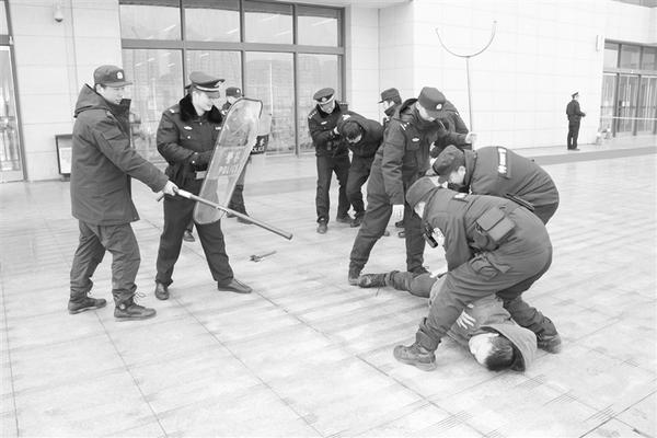 当日上午10时30分,演练正式开始,特警指挥员现场模拟火车站有2名暴徒正在对出站口附近的人员实施暴力。1分钟内,20名民警携带应急装备全部到达处置现场,指挥中心进行任务分工后展开对违法犯罪嫌疑人实施抓捕。整个演练过程紧张有序,处置得当,达到了预期效果。 记者 彭慧 摄
