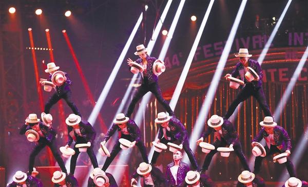 ②1月17日,在摩纳哥蒙特卡洛,中国山东省杂技团的演员在第44届蒙特卡洛国际马戏节上表演《炫·草帽》。