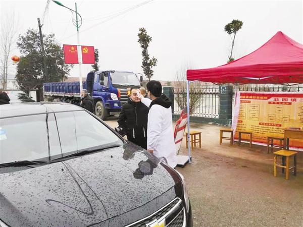 新型冠状病毒感染的肺炎疫情发生以来,韭园镇在镇主干道设置疫情防控卡点,对过往行人和车辆进行体温检测和信息登记,内防输入、外防扩散,筑起疫情防控坚实防线。李一 摄