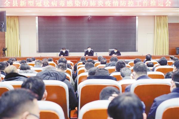 会议认真贯彻习近平总书记在中央政治局常委会议上的重要讲话精神、李克强总理在中央应对新型冠状病毒感染肺炎疫情工作领导小组会议上的讲话精神,省委、省政府专题会议精神,全省保障疫情防控应急物资及人员运输车辆顺畅通行电视电话会议精神,市委常委(扩大)会议精神,通报疫情防控情况,深入研判疫情防控新形势,部署下步全县疫情防控工作。