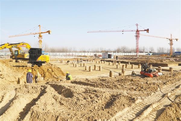 当日,记者在施工现场看到,偌大的工地上,施工车辆来回穿梭,施工人员正在紧张施工(如图 )。“为了保证项目建设顺利进行,我们积极协调施工人员进场和物资调配,目前,已经调配2000多吨钢材进场。现在,1#—4#楼正在进行基础垫层混凝土浇筑前施工,8#—11#楼正在进行一层框柱钢筋绑扎,12#楼正在试桩,13#楼正在开挖桩基基础。后续施工人员也会陆续到场。”施工人员说。