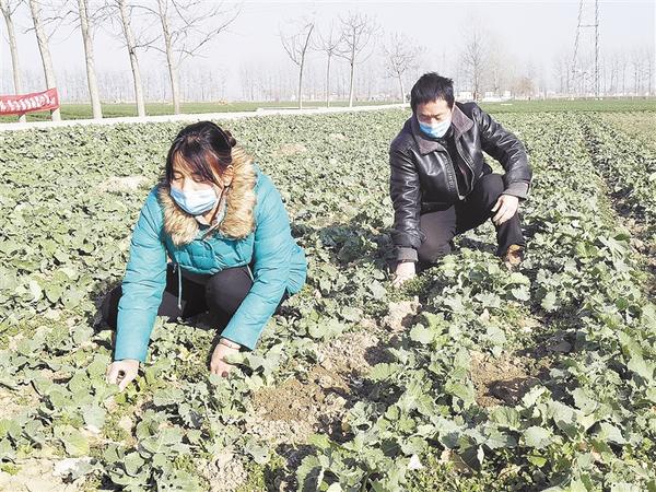 2月14日,商水县平店乡秦黄村村民秦连清、王月夫妇戴着口罩正在对冬油菜进行除草管理。该县各级党委、政府积极引导农民一手抓新冠肺炎疫情防控,一手抓春耕生产。 (赵永昌 摄)