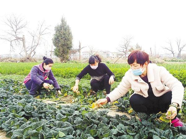 立春以来,沈丘县各乡镇(办)引导群众戴上口罩进行春耕,力求既能做好疫情防控,又不误春耕生产,全力守好老百姓的“菜篮子”。图为该县卞路口乡杜庄村群众正在采摘蔬菜,以供应当地市场。(黄海涛 摄)
