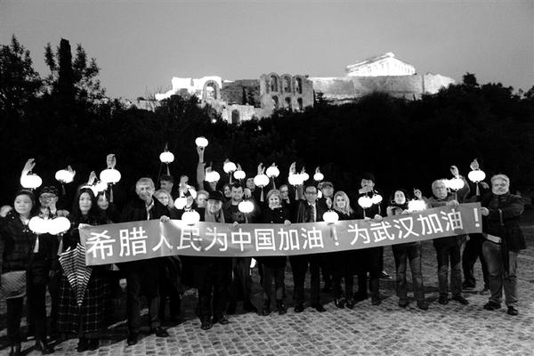 这是一场在希腊雅典市政府支持下,集聚了希腊政商界人士和普通民众,声援中国人民抗击新冠肺炎疫情的祈福活动。