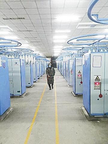 “公司年前刚投资新上了一条生产线加工棉纱,产品供应南方市场。公司复工复产后采取封闭式管理,吃饭采取分餐制一人一桌,住宿一人一间,厂区、生活区每天都进行消毒,员工早中晚要测3次体温。”公司总经理刘文华对记者说。