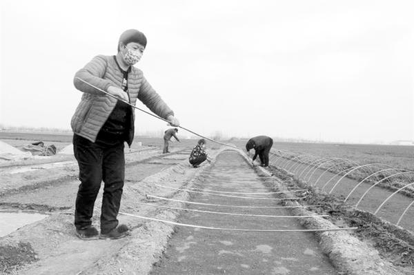 上图: 2月19日,商水县郝岗镇东洄村农民在田间运用拱棚培育小辣椒苗。郝岗镇在做好疫情防控的同时,严抓春耕生产不放松,实行群众外出必须戴口罩,在村口测量体温,错时在田间春耕。 记者 付永奇 通讯员 吕耀光 摄