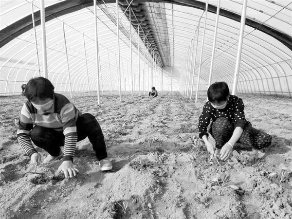 左图:沈丘县各乡镇在全力做好疫情防控的同时,切实抓好农业生产,有效保障市场供应,做到疫情防控和农业生产“两不误”。图为该县卞路口乡肖门村温室大棚里,村民正在移栽有机花菜。 (黄海涛 摄)