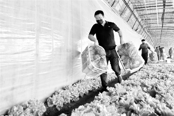 2月19日,太原市晋源区晋祠镇南张村的村民将打包好的生菜运出大棚。近期,山西省太原市在做好新冠肺炎疫情防控的前提下,积极开展农业生产。新华社记者 曹阳 摄