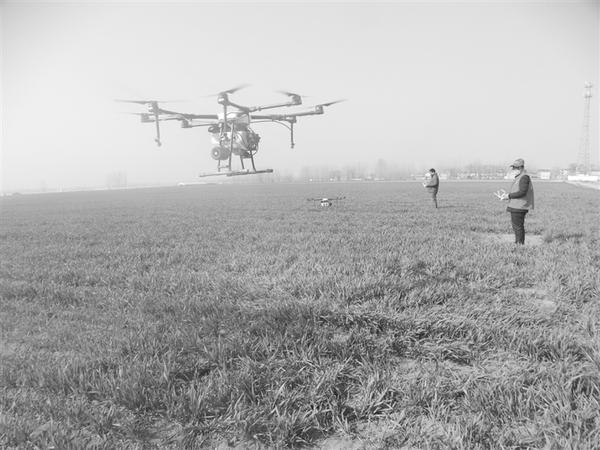 2月23日,在沈丘县周营镇张营村一处万亩小麦高产示范方基地,无人植保机往返穿梭,喷施“生物农药+增长液面肥”混合套餐药液,防治小麦病虫害、促进小麦返青生长。连日来,该县落实疫情防控相关要求的同时,组织成立党员志愿者麦管服务“青年突击队”,巡回帮助服务村民春耕生产,确保防疫春耕“两不误”、同步推进。谢辛凌 周敏 摄