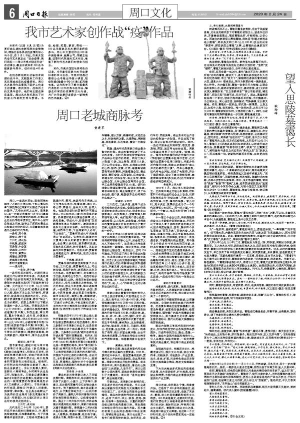 周口老城,自明朝永宁集、周家渡开始,已经有了600多年的建城史,独特的地理形制和历史发展,造就了其亲水、重商、尚义的自然禀赋和经济文化特质。600年来谁著史,在新的时代里,我们有责任有义务继承延续和利用好周口的水脉、商脉和文脉,呼唤周口商业文化复兴,重塑周口商业文化之魂,再造周口商业文化辉煌。在这样一个大好时代里,这个目的将要实现也一定能够实现。②8