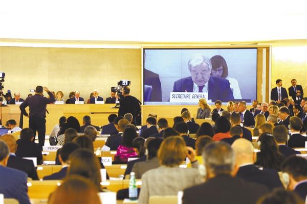 2月24日,在瑞士日内瓦,联合国秘书长古特雷斯在联合国人权理事会第43次会议上讲话。 联合国人权理事会第43次会议24日在日内瓦开幕。联合国秘书长古特雷斯在开幕致辞中发布了一项最新人权行动倡议,敦促各国立即采取切实行动,平衡推动各项人权发展。新华社发