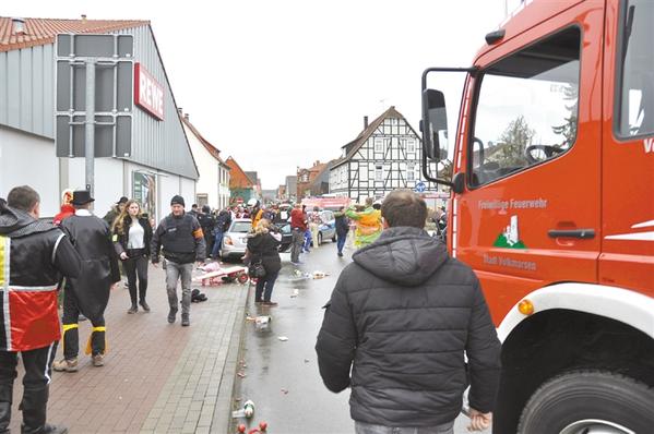 一辆汽车24日下午在德国黑森州小镇福尔克马森冲入狂欢节游行人群,导致约30人受伤。肇事司机被当场逮捕。 新华社发
